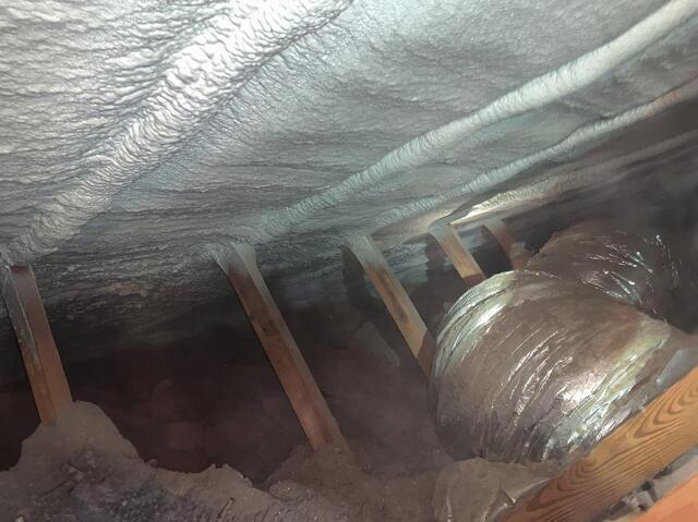 As part of a larger project, 2 inches of closed cell foam was sprayed on the rim joist. Along with the rest of the project, this will contribute to reducing drafts and making the home more comfortable.